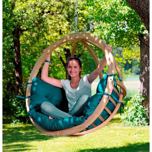 The hanging chair Globo Chair is a relaxing bubble! Characteristics: - Dimensions: 121 x 118 x 69 cm (L x H x D)- Frame: High quality glue-laminated, weatherproofed Spruce - Cushion: material 100 % cotton - Fittings: Stainless steel - Weight resistance: up to 120 kg - Product weight: 20 kg - Package size: 126 x 80 x 31 cm - Made in Poland